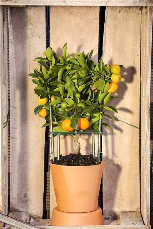 Die Zitruspflanze (Citrus) ist eine sehr beliebte Kübelpflanze, deren grünen, gelben bis orangefarbenen Früchte bei guter Pflege möglich sind. Ihre dekorativen Blüten sind radförmig und erscheinen von Mai bis September. Sie verströmen einen starken Duft. Verwenden Sie bevorzugt die spezielle Kübelpflanzenerde, denn sie verdichtet sich über längere Zeit nicht.