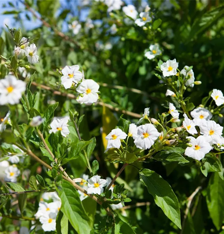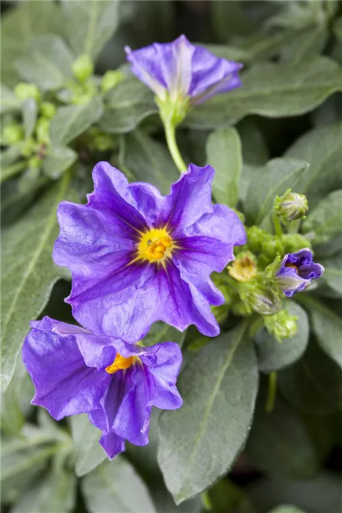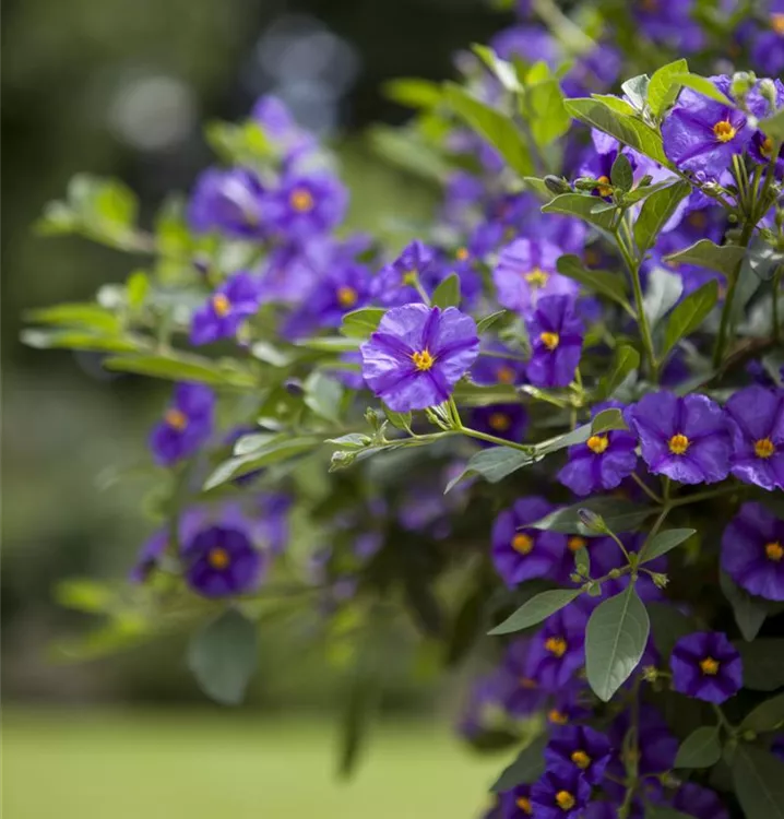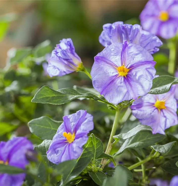 Der Enzianstrauch (Solanum rantonnetii) ist eine sehr beliebte Kübelpflanze. Seine dekorativen Blüten sind sternförmig und erscheinen von Mai bis Oktober. Verwenden Sie bevorzugt die spezielle Kübelpflanzenerde, denn sie verdichtet sich über längere Zeit nicht.