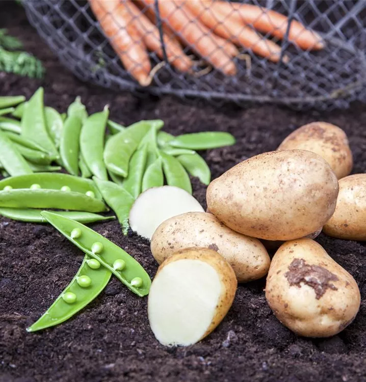 Die Kartoffel (Solanum tuberosum) bildet Knollen, die aromatisch schmecken und bereits ab August geerntet werden können. Für das optimale Wachstum der Kartoffel werden ein sonniger Standort und durchlässiger, nährstoffreicher Boden benötigt.