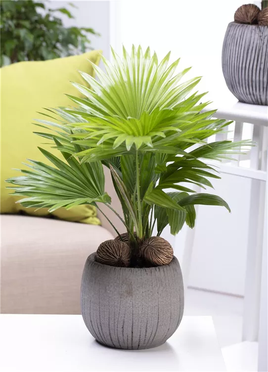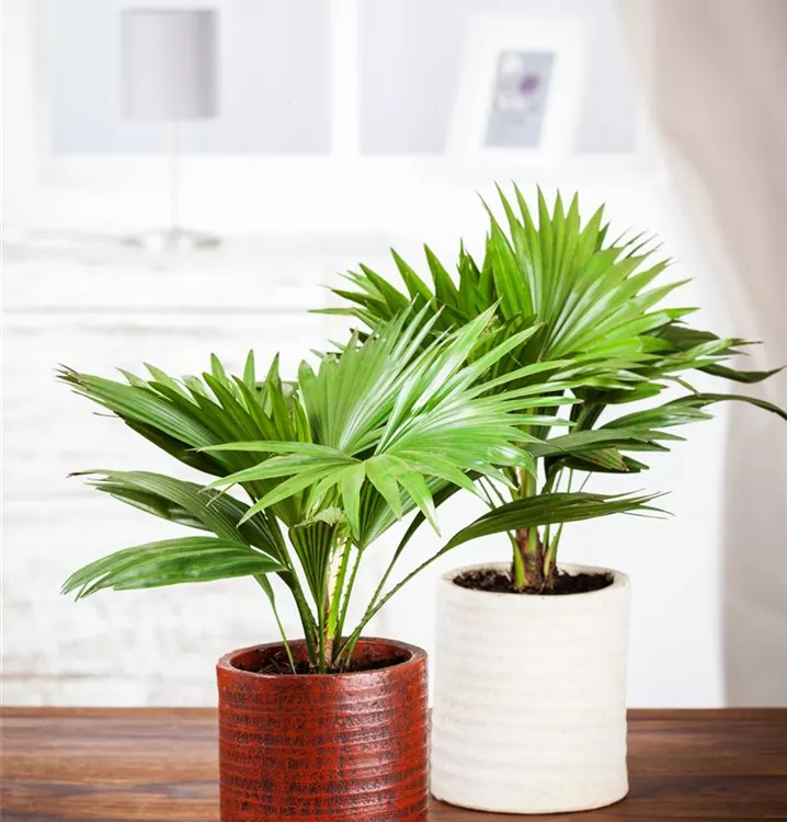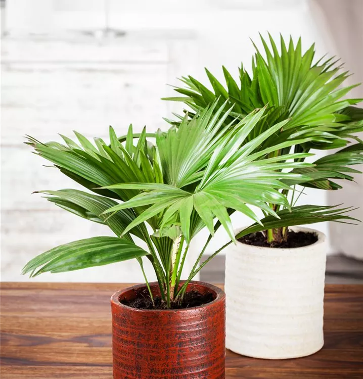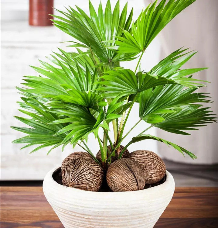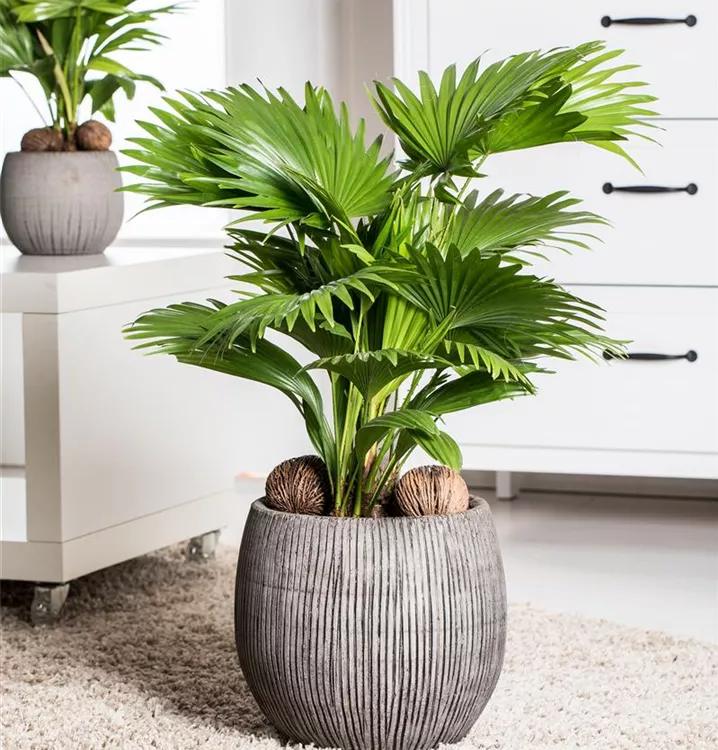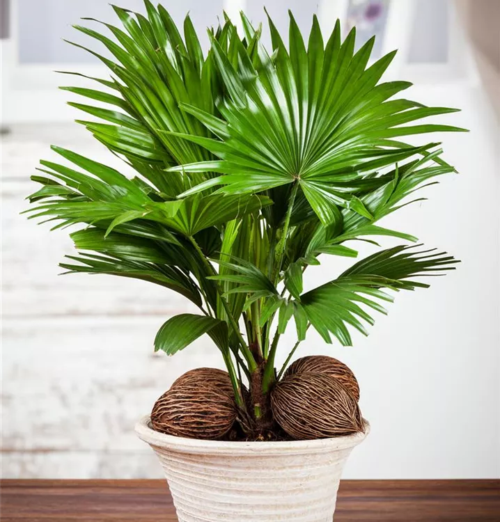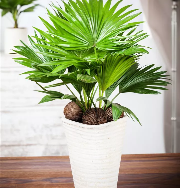 Die Chinesische Livingstonpalme (Livistona chinensis) ist eine sehr beliebte Kübelpflanze. Verwenden Sie bevorzugt die spezielle Kübelpflanzenerde, denn sie verdichtet sich über längere Zeit nicht.